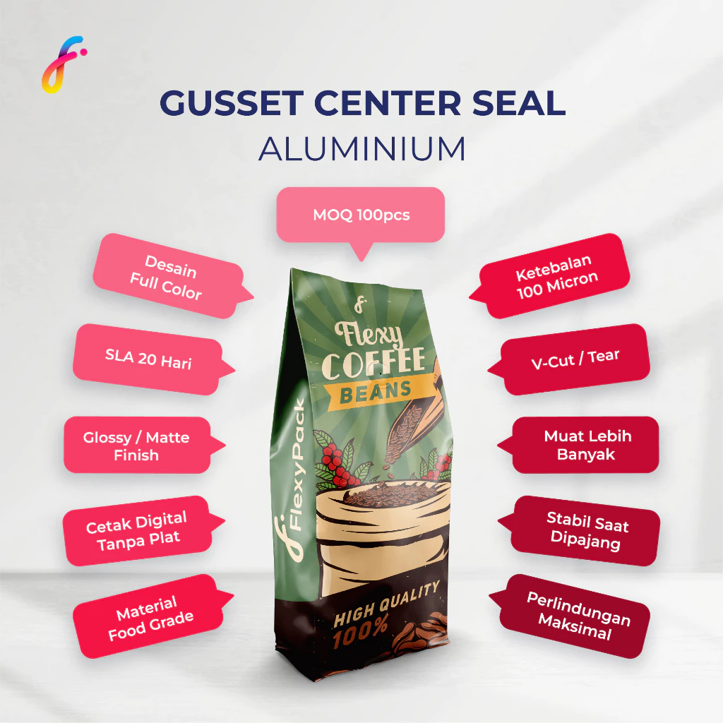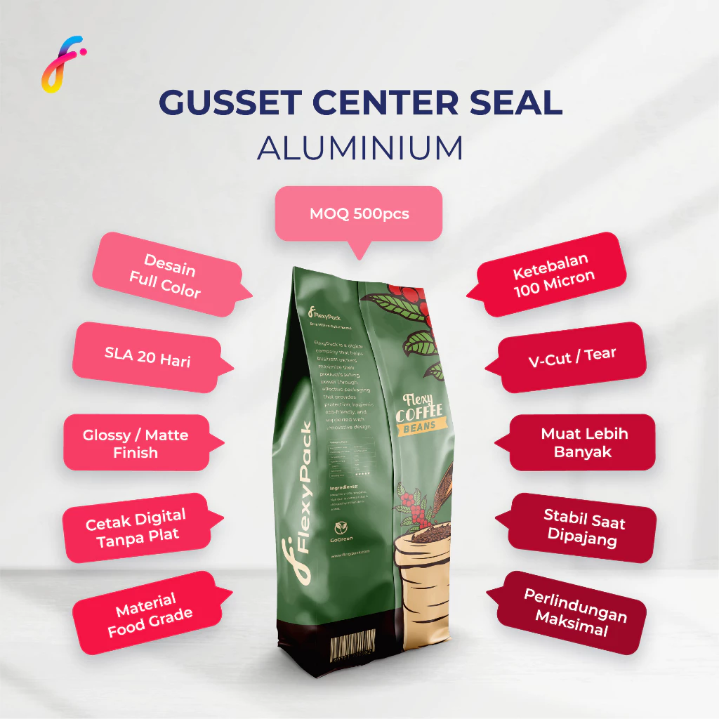 Cetak Gusset Center Seal Aluminium Super 100 Matte/Doff – 29 x 11 x 6 cm