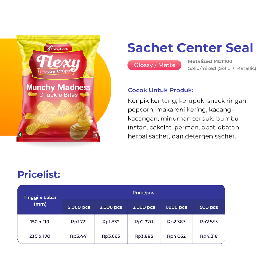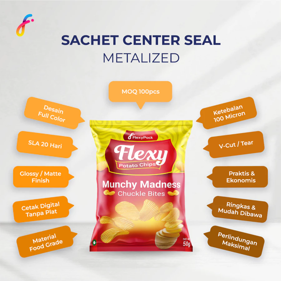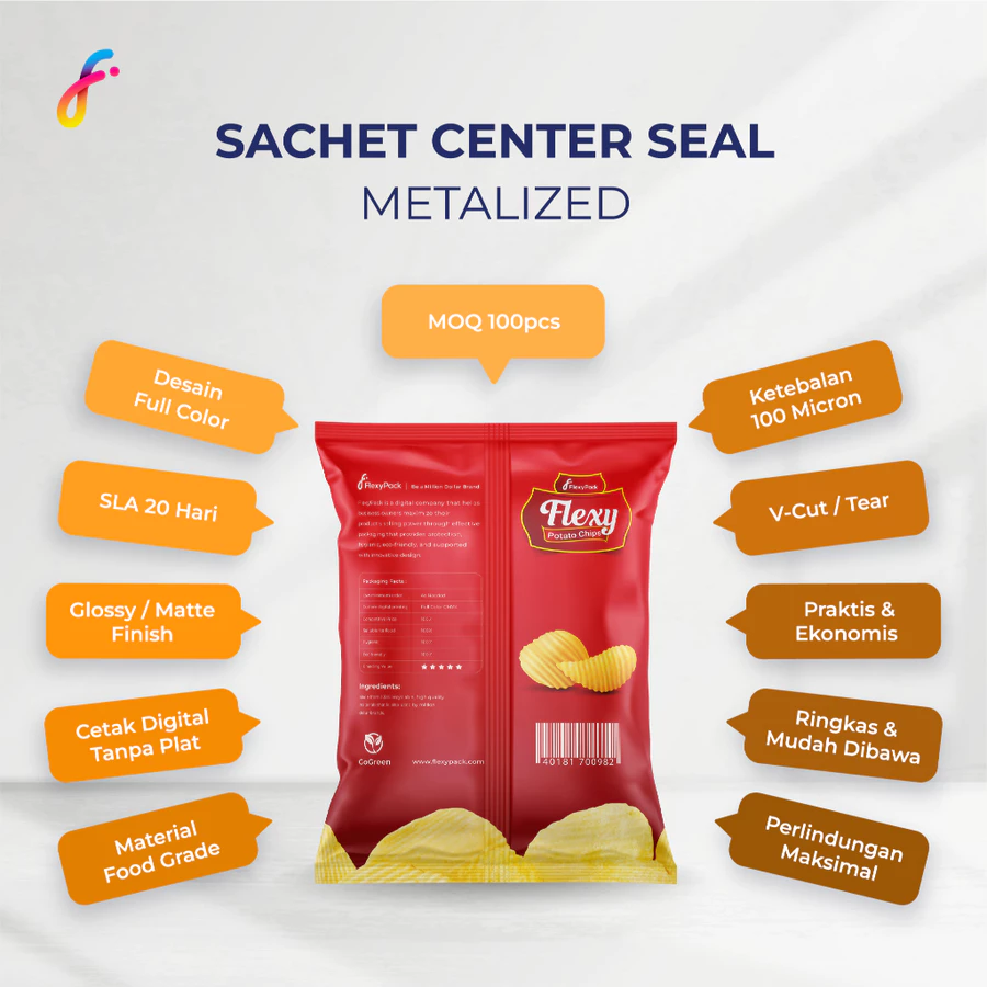 Cetak Sachet Center Seal Metallize 100 Glossy – 23 x 17 cm