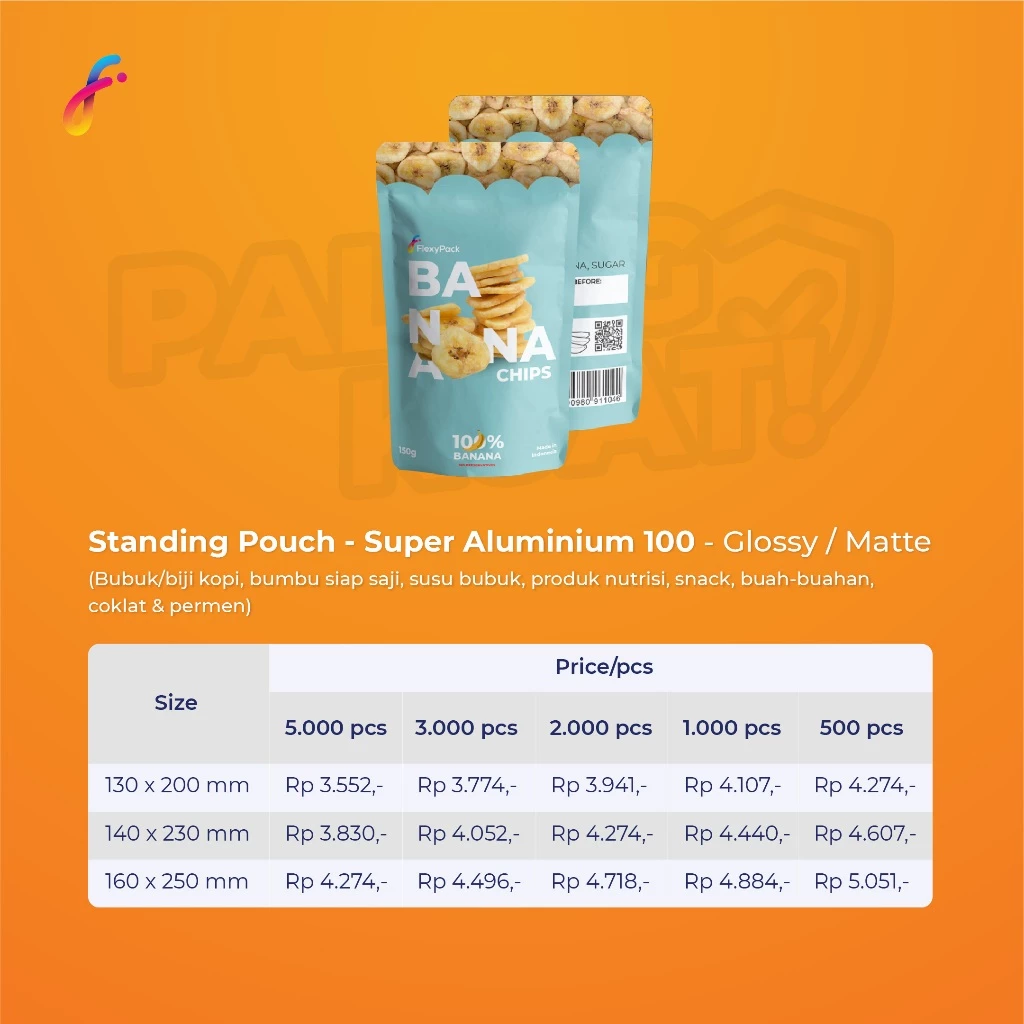 Cetak Standing Pouch Aluminium Super 100 Matte/Doff – 16 x 25 cm